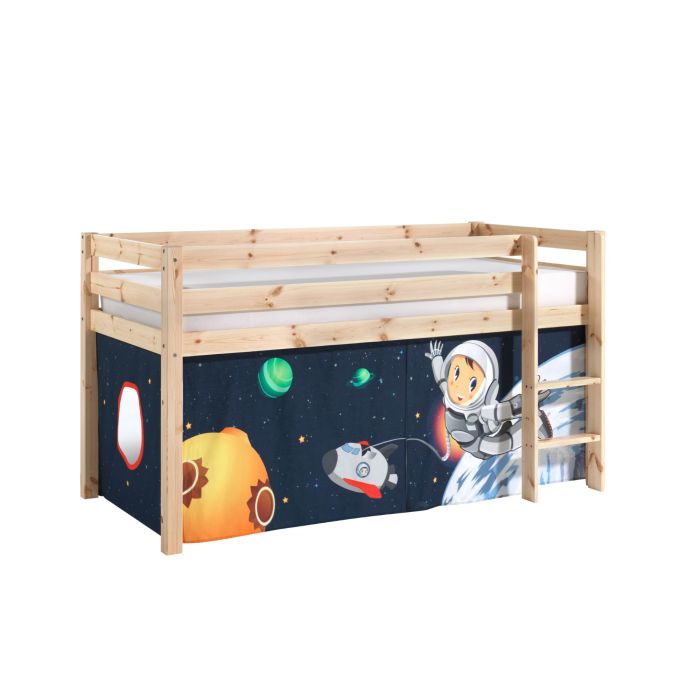 This pino combination consists of the naturally lacquered mid sleeper and space curtain.