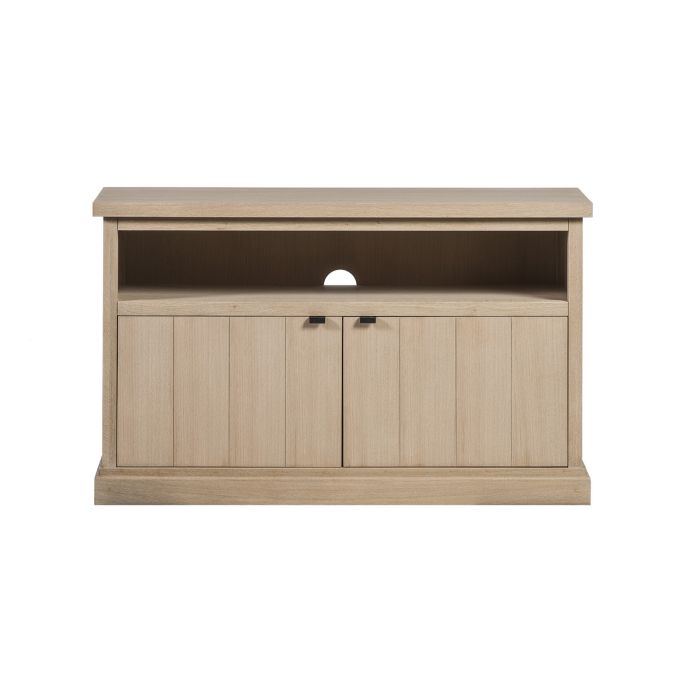 TV cabinet by Claramo: tall model in oak with 2 doors. Combine functionality and style for a timeless living experience. Elegant model in natural oak wood, perfect to combine due to its natural color.